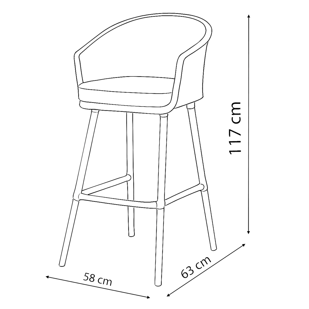 نمایی که در شکل زیر می بینید نمایی کلی اشغال شده توسط صندلی بار ممفیس در فضای شما می باشد بورنووی برای راحت کردن انتخاب شما سعی بر این دارد فضای درگیر هر محصول را بصورت دیاگرام در اختیار شما عزیزان قرار دهد.